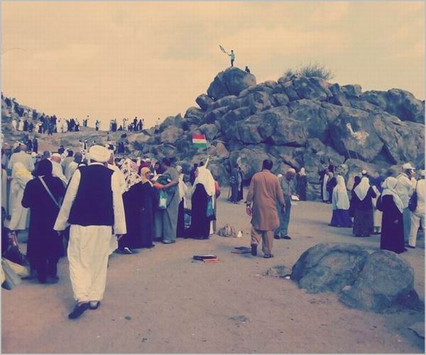 Arafat dağının zirvesinde umre ziyareti için gelen
