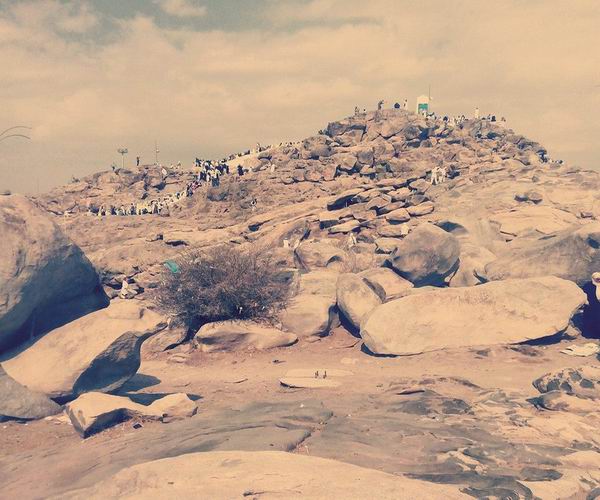 Arafat dağının zirvesinde umre ziyareti için gelen